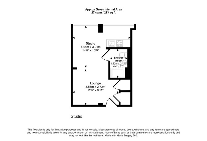 The property comprises a first floor studio flat situated within a purpose built block arranged over ground and four upper floors.