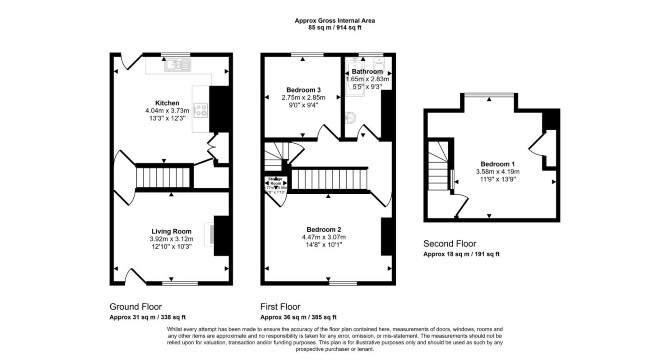 Lower Ground Floor Basement Ground Floor Reception Room Kitchen First Floor Two Bedrooms Bathroom Second Floor Bedroom