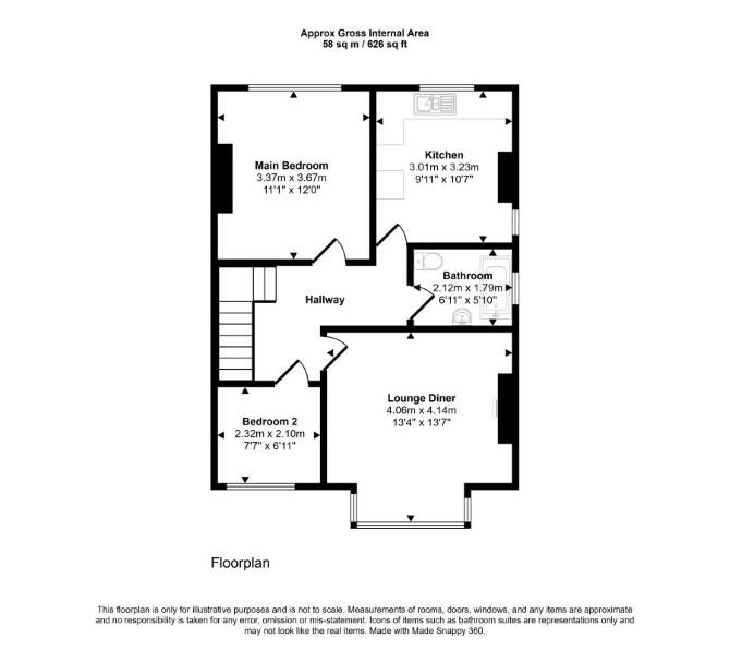 The property comprises a first floor two bedroom flat situated within a mid terrace building arranged over ground and first floors.