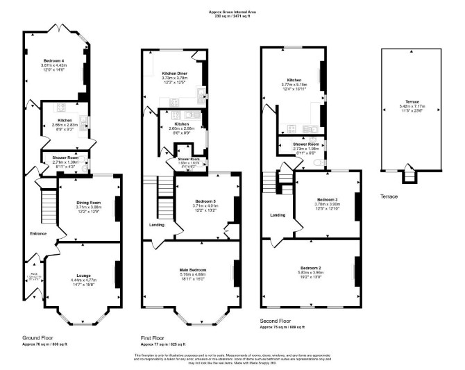 Ground Floor Three Reception Rooms Kitchen Bathroom First Floor Two Kitchens Two Bedrooms Bathroom Second Floor Reception Room with Open-Plan Kitchen Two Bedrooms Bathroom