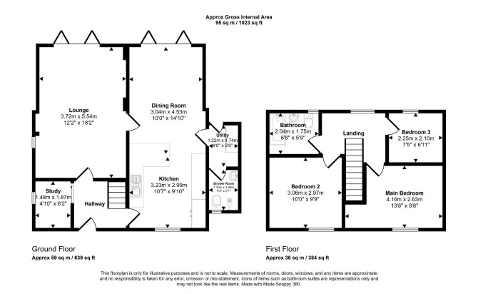 Ground Floor Reception Room Open Plan Kitchen / Dining Room Study Utility Room WC First Floor Three Bedrooms Bathroom