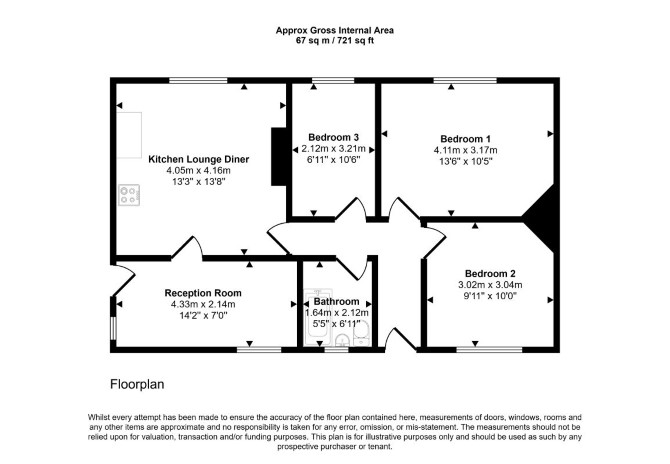 Ground Floor Kitchen/Diner (not fitted) Four Rooms Bathroom