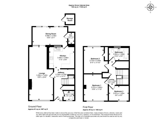 Ground Floor Through Reception Room Kitchen Conservatory WC First Floor Three Bedrooms Bathroom