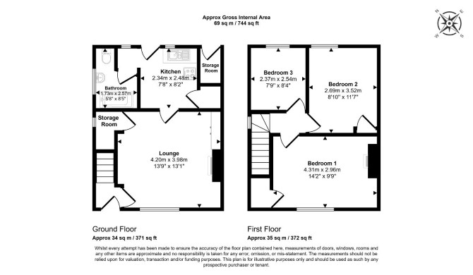 Ground Floor Reception Room Kitchen First Floor Three Bedrooms Bathroom Total G.I.A Approximately 73 sq m