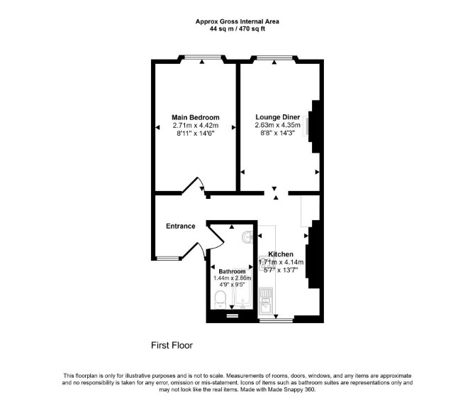 The property comprises a second floor one bedroom flat situated within a mid terrace building arranged over lower ground, ground and three upper floors.