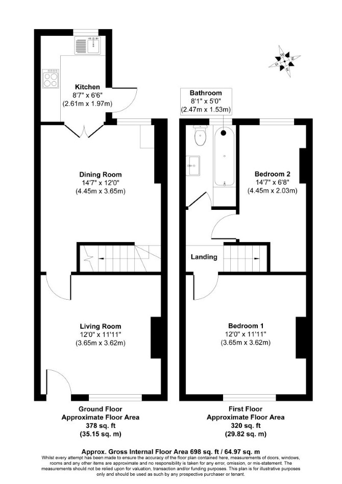 Ground Floor Two Reception Rooms Kitchen First Floor Two Bedrooms Bathroom