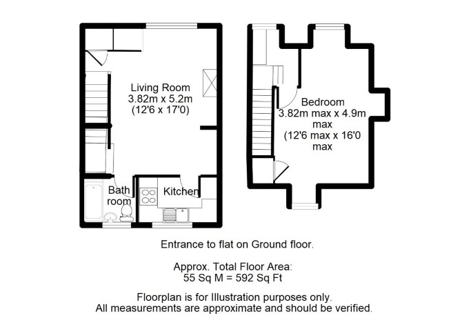 The property comprises a first and second floor one bedroom split level flat situated within a Grade II Listed mid terrace building arranged over ground and two upper floors.