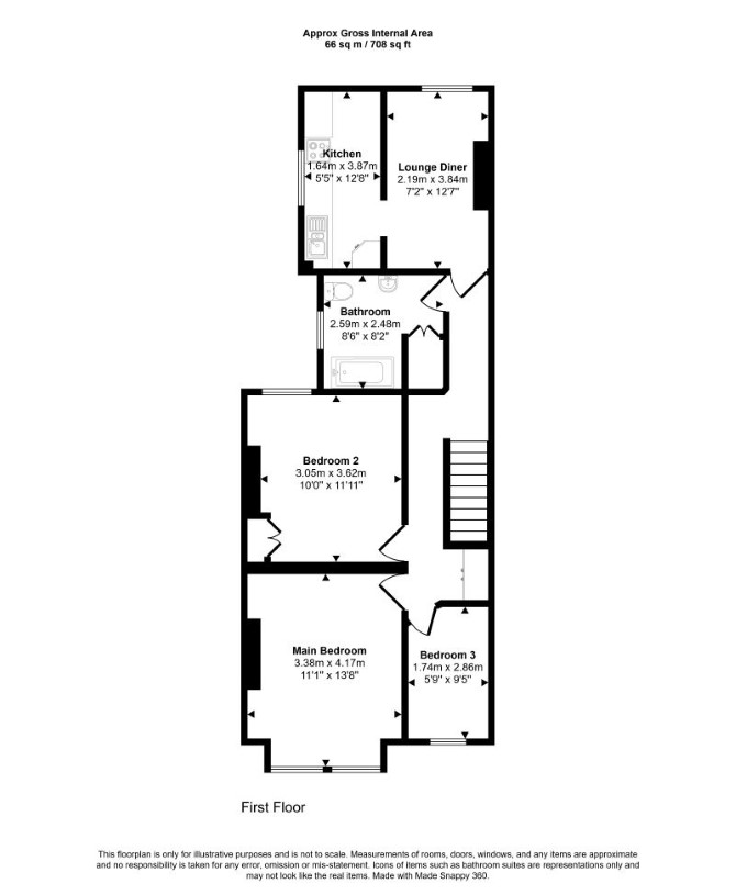 The property comprises a first floor two bedroom flat situated within a mid terrace building arranged over ground and first floors.