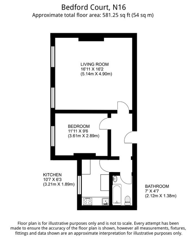 The property comprises a first floor one bedroom flat situated within an end of terrace building arranged over ground and three upper floors.