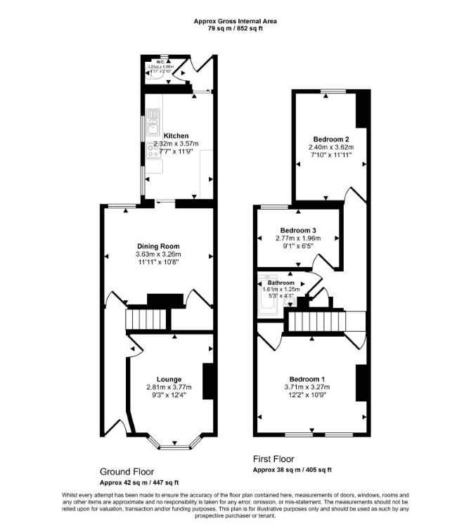 Ground Floor Two Reception Rooms Kitchen WC First Floor Three Bedrooms Bathroom