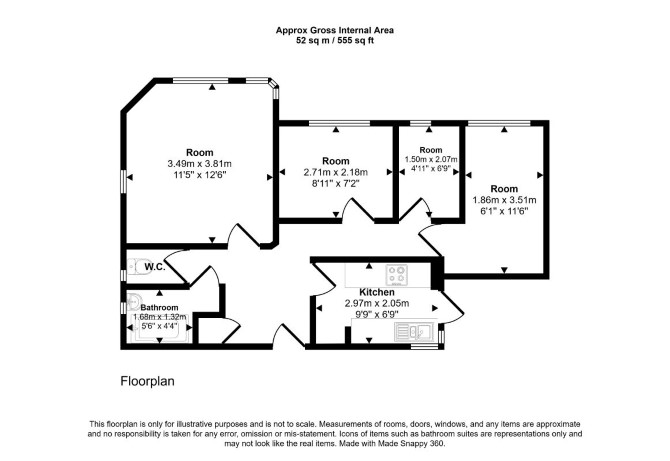 The property comprises a first floor four room flat situated within a purpose built block arranged over ground and three upper floors.