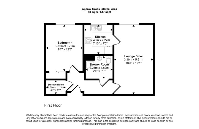The property comprises a first floor one bedroom flat situated within a purpose built block arranged over ground and two upper floors.