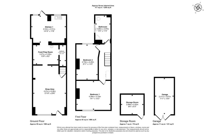 Ground Floor Shop Area Food Prep Area Kitchen First Floor Two Bedrooms Bathroom