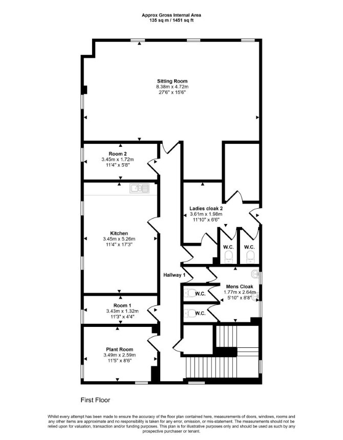 The property comprises a first floor commercial unit situated within a corner building arranged over ground and first floors.