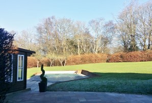 The property benefits from substantial gardens, a triple garage, off-street parking for several cars and an outdoor swimming pool.