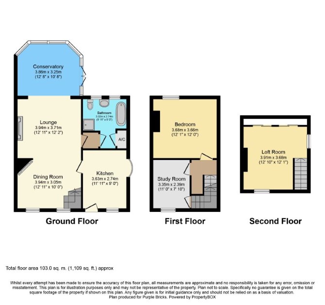 Ground Floor Reception Room Dining Area Kitchen Conservatory First Floor Two Bedrooms Second Floor Bedroom/Loft Room