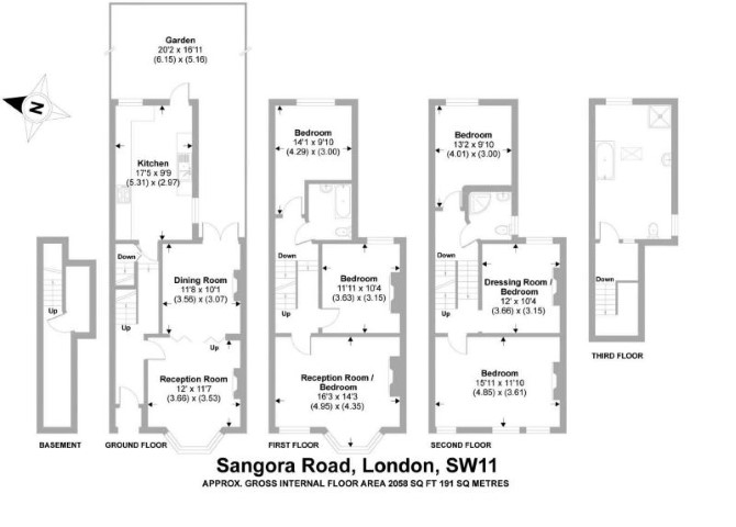 Ground Floor Through Reception Room Kitchen Cellar First Floor Reception Room Two Bedrooms Bathroom with WC & wash basin Second Floor Three Bedrooms Shower Room with WC & wash basin Third Floor Bathroom GIA approx. 2,050 sq ft
