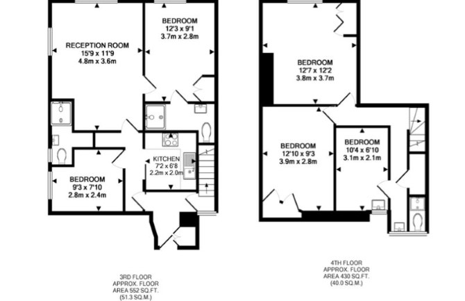 Third Floor Reception Room Kitchen Two Bedrooms Two Shower Rooms Fourth Floor Three Bedrooms Shower Room with WC & wash basin
