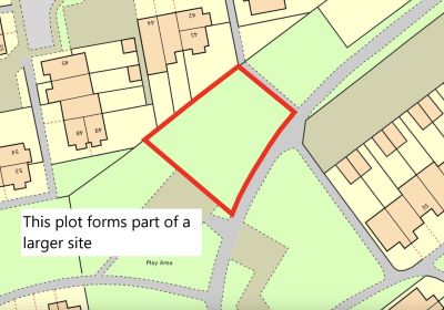 The site area depicted within the plan in the auction particulars is for indicative purposes only. Additionally, any measurements stated may not be exact. Some or all of the plot may comprise adopted highway land and if the site has trees, there may be Tree Preservation Orders in place. Buyers should rely on their own enquiries with regard to precise measurements, any consents or rights over the land and any possible development potential or alternative uses for this site.
