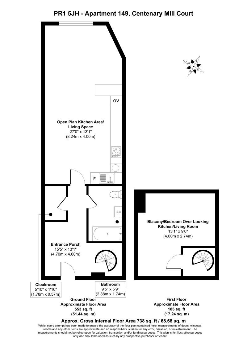 First Floor Reception Room with Open-Plan Kitchen Bedroom Bathroom