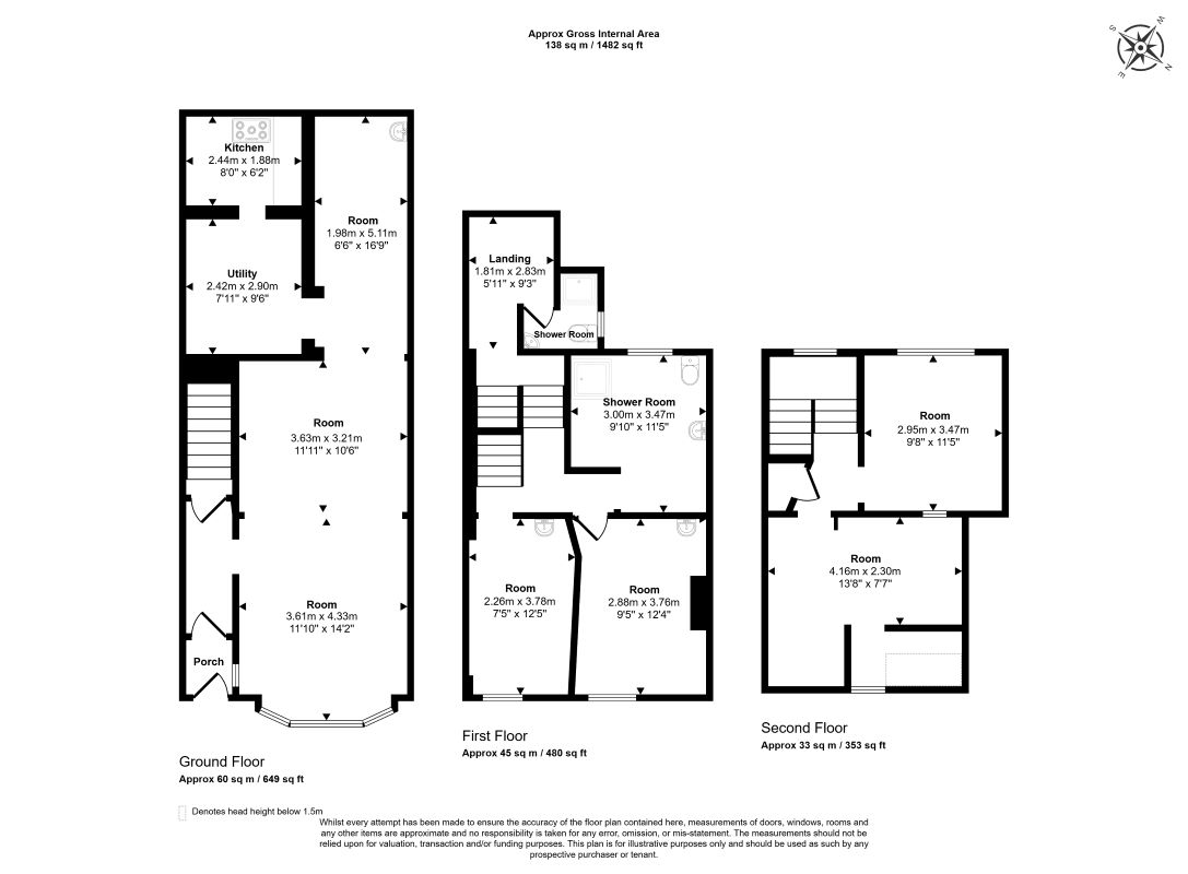 Ground Floor Through Room Room Kitchen Utility Room First Floor Two Rooms Two Bathrooms Second Floor Two Rooms