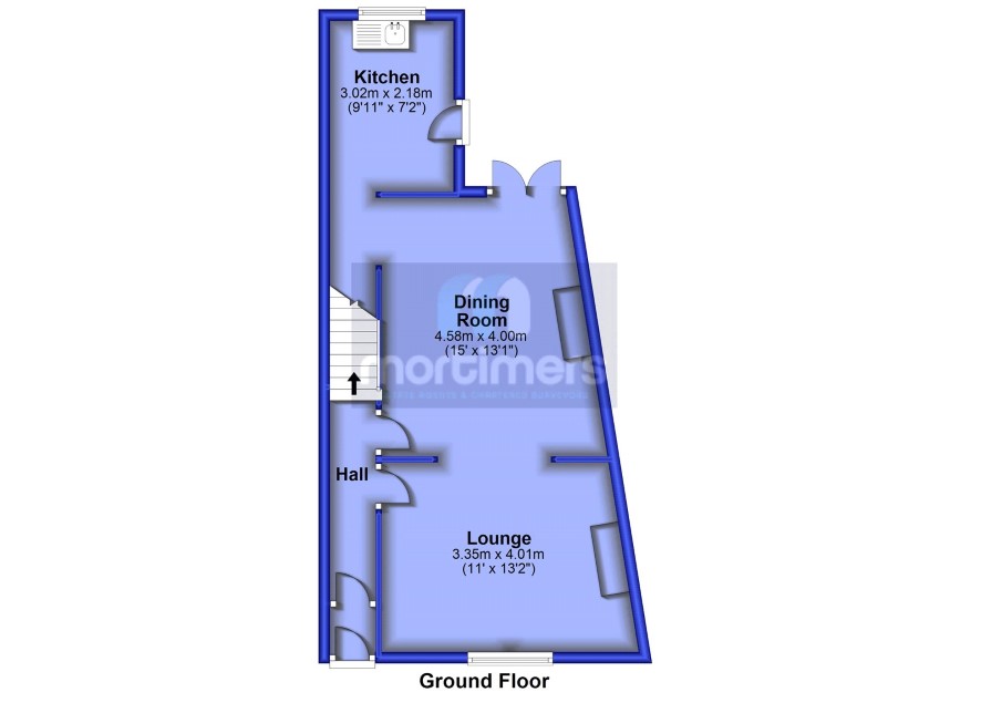 Entrance Hall Lounge 11’0’’ x 13’2’’ (3.35m x 4.01m) Dining Room 15’0’’ x 13’1’’ (4.58m x 4.00m) Kitchen 9’11’’ x 7’2’’ (3.02m x 2.18m)