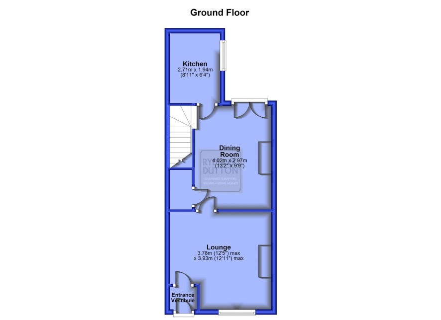 Entrance Vestibule Lounge 12’5” max x 12’1” max (3.78m max x 3.93m max) Dining Room 13’2” x 9’9” (4.02m x 2.97m) Kitchen 8’11” x 6’4” (2.71m x 1.94m)