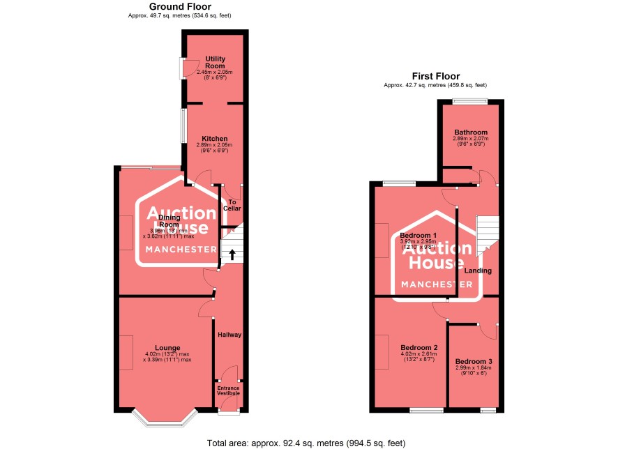 Entrance Vestibule Hallway Lounge 13’2” x 11’1 (4.01m x 3.38m) Dining Room 13’0” x 11’11” reducing to 11’1” then 7’4” (3.96m x 3.62m reducing to 3.39m x 2.24m) Kitchen 9’6” x 6’9” (2.9m x 2.06m) Utility Room 8’0” x 6’9” (2.44m x 2.06m)