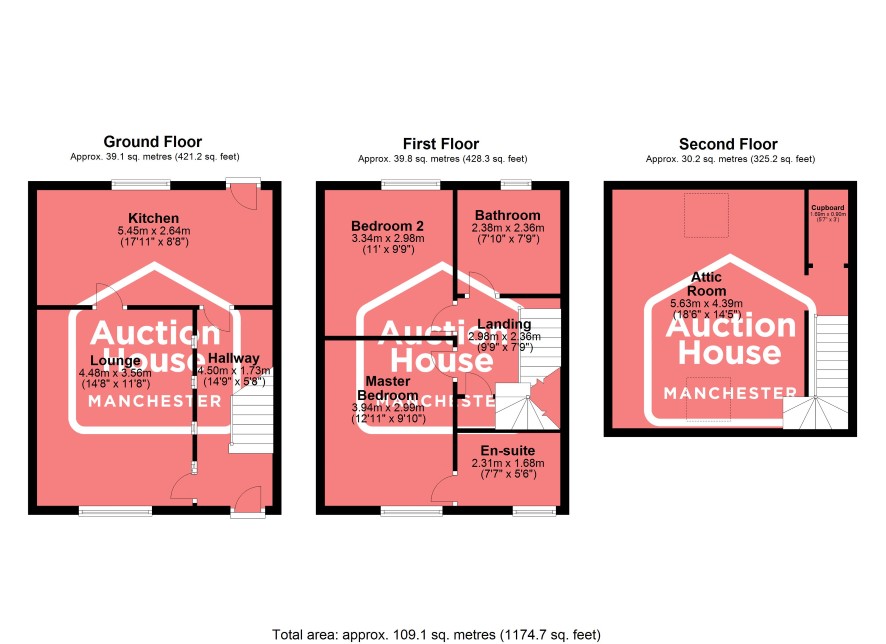 Landing Bedroom One 12'11" x 9'10" (3.94m x 3m) En-Suite 7'7" x 5'6" (2.3m x 1.68m) Bedroom Two 11 x 9'9" (3.35m x 2.97m) Bathroom 7’10 x 7’9” (2.38 x 2.36)