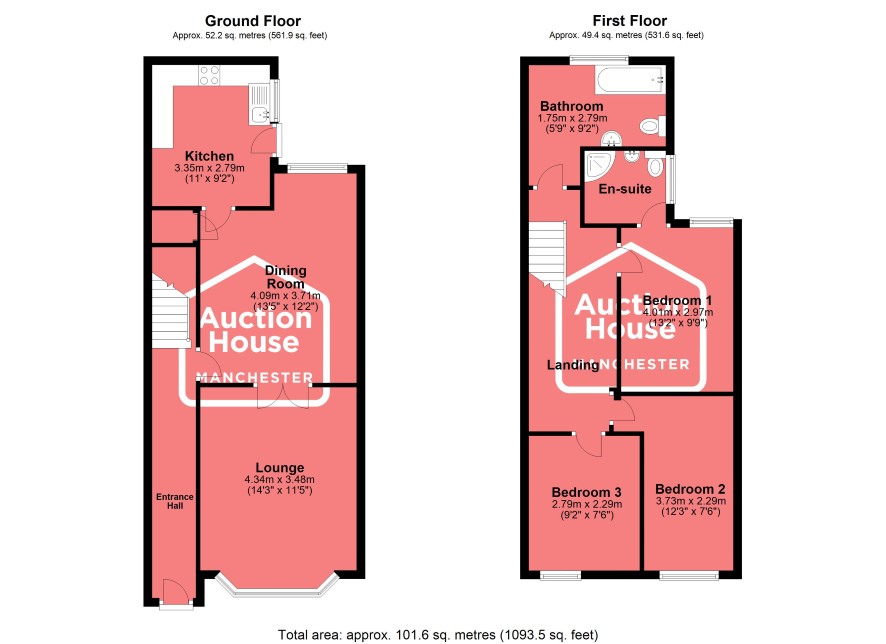 Entrance Hall Lounge 14'3" x 11'5" (4.34m x 3.48m) Dining Room 13'5" x 12'2" (4.09m x 3.71m) Kitchen 11' x 9'2" (3.35m x 2.79m)