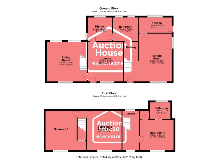 Landing Bedroom 1 4.70m x 4.65m (15'5" x 15'3") Bedroom 2 4.62m x 4.06m (15'2" x13'4") Bedroom 3 3.91m x 3.50m (12'10" x 11'6") Bathroom