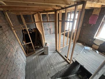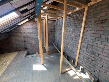 Stone Back to Back Mid Terraced Property set over four floors and located in the popular residential area of Crosland Moor. Offering convenient access to local amenities, schools and transport links, including bus routes to Huddersfield and Lockwood Railway Station. The lower level has a front facing external door and has a bathroom and dining kitchen which has started to be removed, internal staircase leading up to the ground floor. Ground floor has a front facing external door and has been stripped back to the brick work and is an open plan space, fixed staircase leading upto the first floor. First floor has been stripped back to brick with a new layout started with wooden framework creating two bedrooms and bathroom and fixed staircase leading upto the attic space. Attic space has front facing Velux windows and the wooden framework for an en-suite shower room.