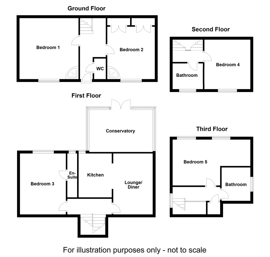 Bedroom three, Ensuite, Lounge, Kitchen, Dining area, Conservatory.