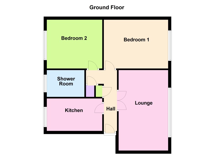 Reception Hall with glazed double doors to Lounge 5.24m x 3.2 with window overlooking rear Gardens. Kitchen 3.6m x 2.1m with stainless steel sink unit and range of units with breakfast bar and window to front. Bedroom 1 (rear) 4.2m x 3.16m Bedroom 2 (front) 3.43m x 3.17m Shower Room with tiled cubicle, low level W.C and wash hand basin.