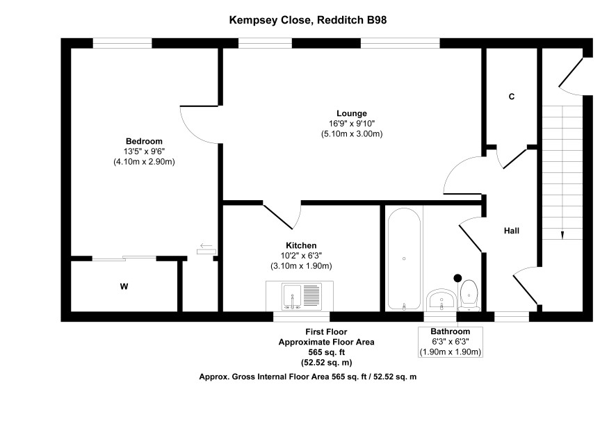 Lounge 5.1m x 3m Kitchen 3.1m x 1.9m Bathroom 1.9m x 1.9m Bedroom 4.1m x 2.9m