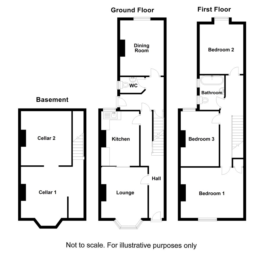 This traditional bay fronted Victorian period two storey townhouse provides ample scope for modernisation and refurbishment providing three bedroomed accommodation with two reception rooms, kitchen and a two room basement cellar.