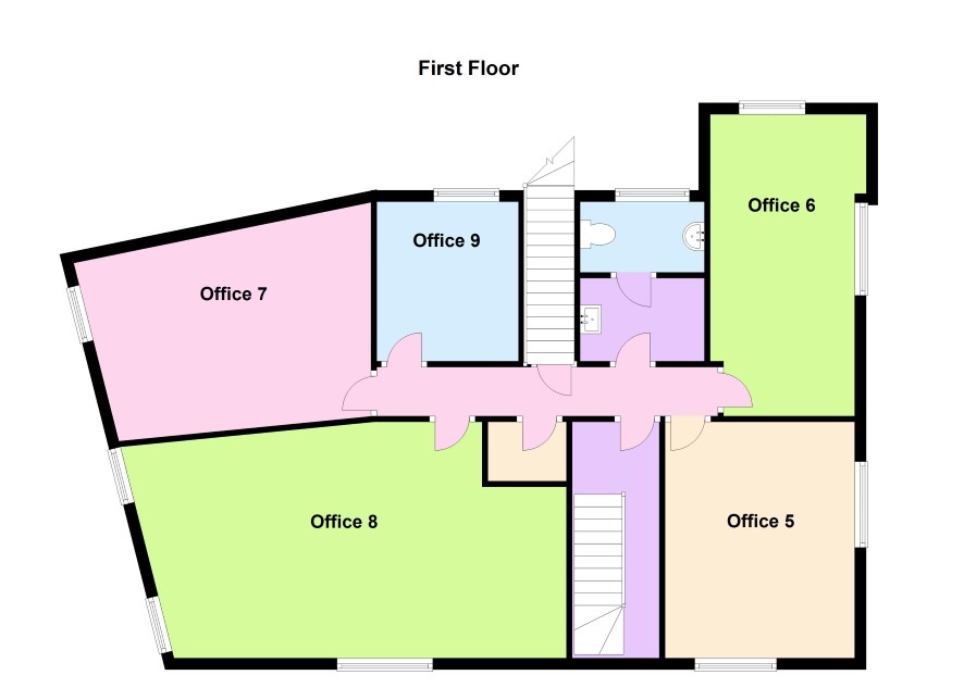 Office 5 4.11m x 3.35m Having two radiators and two double glazed windows Office 6 5.51m x 3.61m Having two radiators and two double glazed windows Upstairs WC Having sink, toilet, wash hand basin, double glazed window, wall mounted boiler and radiator Stairs to the fire exit Storage cupboard Office 7 5m x 3.94m Having double glazed window, and two radiators Office 9 2.74m x 2.67m Having double glazed window, and radiator Office 8 6.71m x 3.73m Having double glazed window, and two radiators