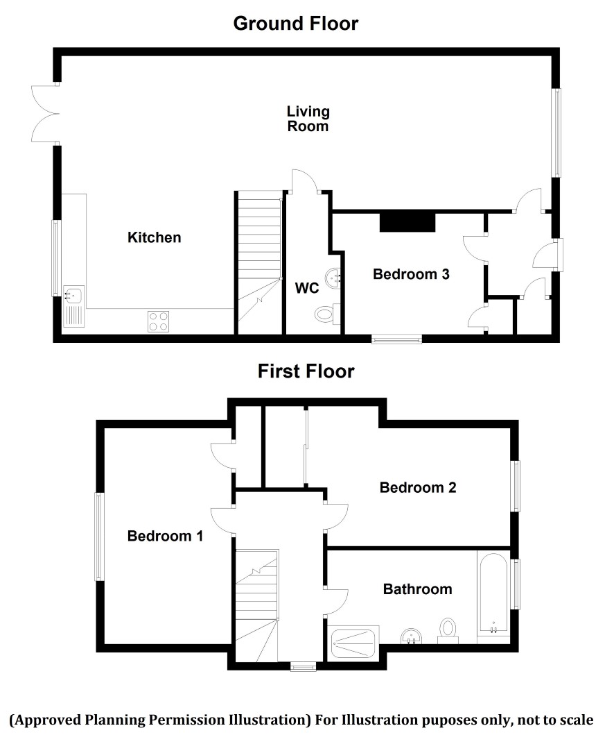 Entrance area, bathroom/bedroom three and room to rear/kitchen area.