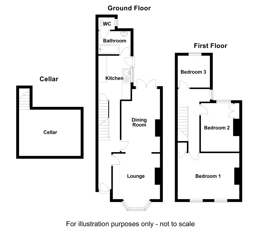 The property has a linked lounge/dining room with kitchen, bathroom and separate WC on the ground floor. The property has the added benefit of a basement cellar and a partly walled and fenced garden to the rear.