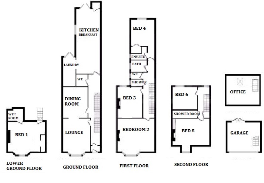 The property has a HMO license with communal areas including two reception rooms, open plan kitchen/breakfast room with laundry area and storage with communal access to a low maintenance paved rear garden and a double garage with office above. The property extends to approximately 2,150 square feet arranged over four floors and has been professionally managed by the present owner.