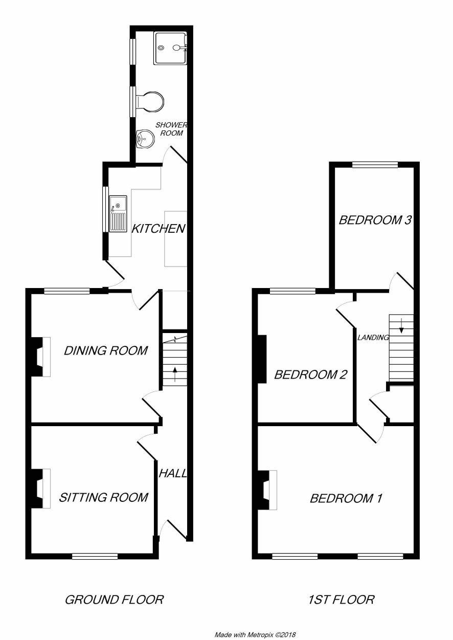A traditional red brick two storey 3 bedroomed terrace house.