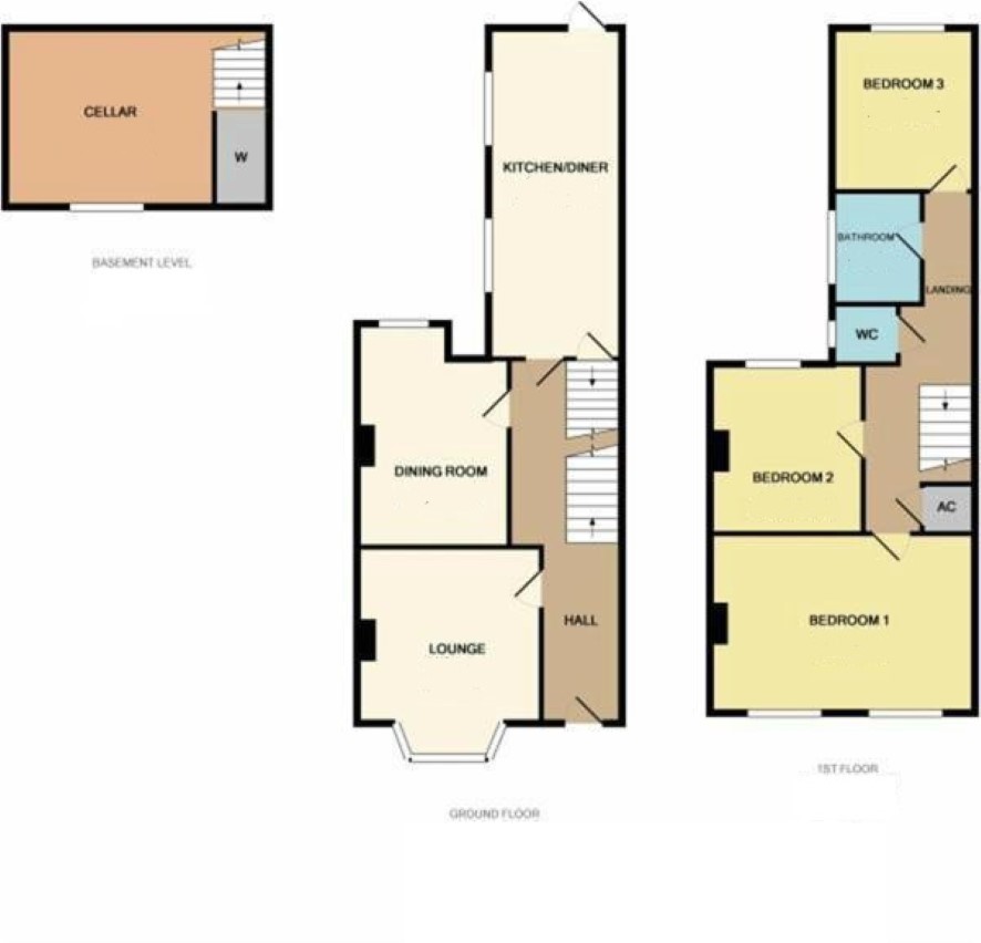 Bedroom one, bedroom two, bedroom three, bathroom and WC.