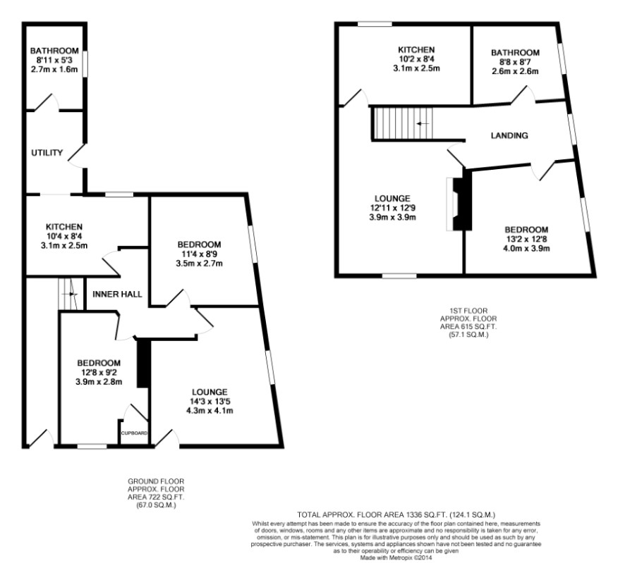 Lounge 14' 3'' x 13' 5 (4.34m x 4.09m) Central heating radiator. Inner Hallway Bedroom 1 11' 4'' x 8' 9 (3.45m x 2.66m) Central heating radiator. Bedroom 2 12' 8'' x 9' 2 (3.86m x 2.79m) Cupboard housing central heating boiler, central heating radiator. Kitchen 10' 4'' x 8' 4 (3.15m x 2.54m) Wall and base units. Utility room Door to the rear yard and central heating radiator. Bathroom 8' 11'' x 5' 3 (2.72m x 1.60m) White suite, bath, low level wc, pedestal wash hand basin.