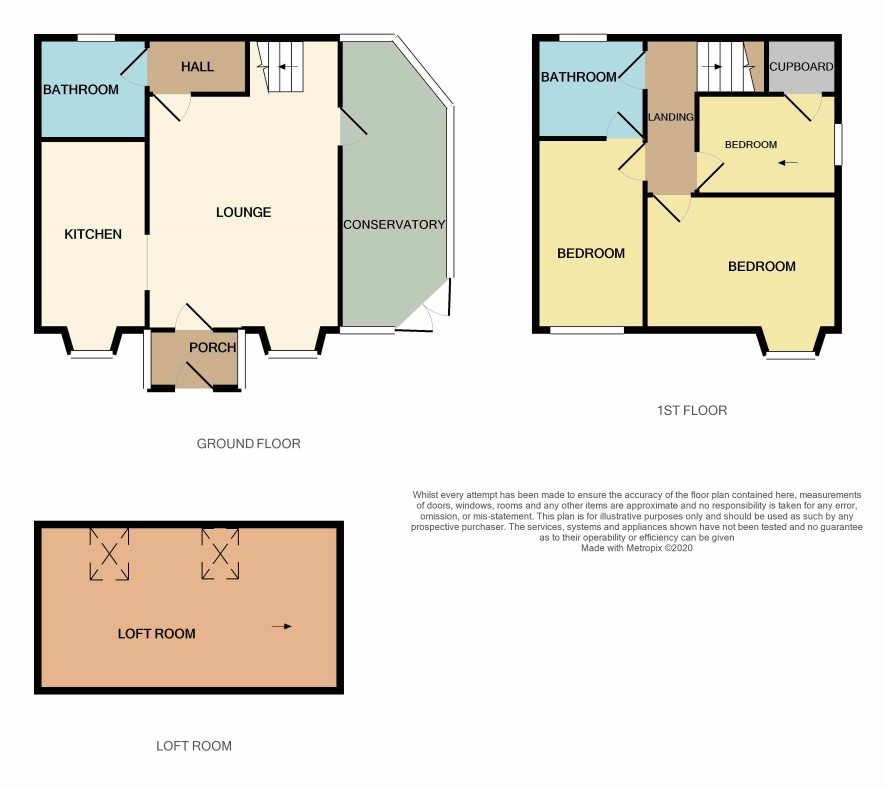 Bedroom One – 2.67m x 3.83m Bedroom Two – 3.53m x 2.14m Bedroom Three (also has access to attic room) – 1.95m x 2.80m Attic Room – 3.31m x 5.65m