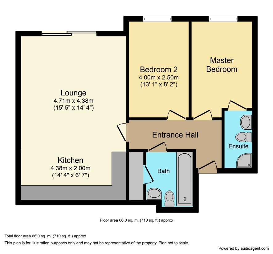 Lounge area: 15'5 x 14'1 with river views, patio doors to balcony Kitchen: 6'5 x 14'1 with a range of wall and base units