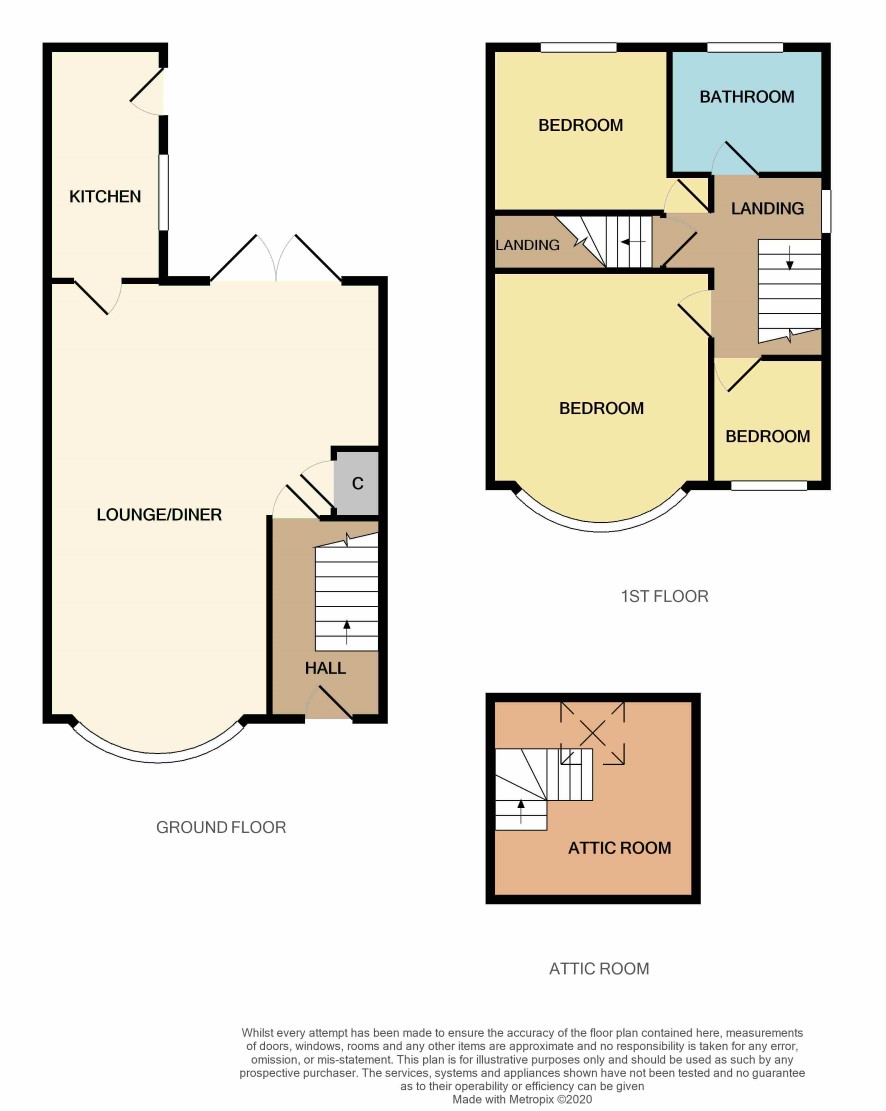 Landing Bedroom One – 4.16m x 3.51m Bedroom Two – 2.72m x 2.62m Bedroom Three – 2.01m x 1.71m Attic Room – 3.21m x 3.16m