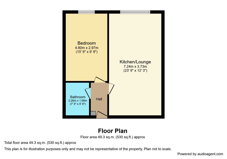 Floor to Ceiling windows, fully fitted kitchen. Heater