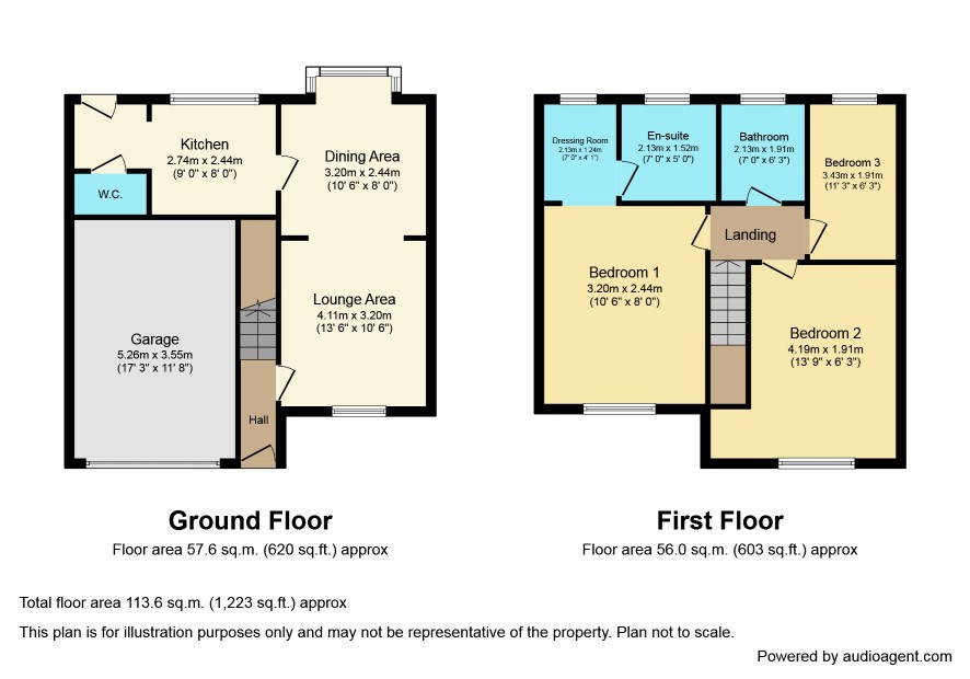 Modern construction, three bedroom detached property in excellent condition. Currently tenanted on an AST at £675pcm. Comprises: hallway, open plan lounge/dining room, kitchen and cloakroom to the ground floor, three bedrooms (one with ensuite and dressing area) and bathroom to first floor. Outside is garage and gardens.