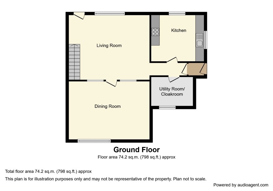 Living Room 18'9 x 15' with stairs to the first floor and doors to: Dining Room 18'9 x 13'6 Kitchen 12'3 x 10'9 Utility Room/Cloakroom 10' x 6'9