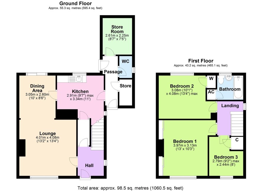 Entrance Hall - Radiator, electric meter, fuse board. Window to side. Entrance door to front. Doors to Lounge and Lobby which leads through to Kitchen Lounge/Dining Room Lounge 4.01m x 4.08m (13’2” x 13’4”). Open fireplace, coving, two radiators, wall lights. Window to front. Door to Entrance Hall. Archway to Dining Area. Dining Area 3.05m x 2.60m (10’ x 8’6”). Coving. Double glazed patio doors to rear. Door to Kitchen. Archway to Lounge. Kitchen - 2.91m x 3.34m (9'7” x 11’)(maximum depth up to door to Lobby). Stainless steel single drainer sink unit, electric cooker point, plumbing for washing machine, stove with central heating back boiler. Windows to side and rear. Doors to Dining Area, Lobby and Passage. PASSAGE - Entrance door to front. Entrance door to side leading to Rear Garden. Doors to Kitchen, Store Room and WC. WC Low level WC. Window to side. Door to Passage. SMALL STORE ROOM (not accessed) - 2.61m x 2.25m (8’7” x 7’5”). Door to Passage.